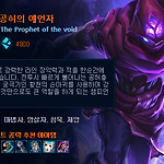 챔프 설명 및 템트리 챔프 능력치 챔프 스킬 챔프 스토리 슈리마 사막의 작열하는 태양을 견디지 못한 수많은 사람들이 미쳐버렸다. 그렇게 광기에 사로잡힌 이들도 모두 잠들었을 무렵, 서늘한 밤공기 속에 비로소 이성의 끈을 놓아 버리는 한 남자가 있었다. 그 사내의 이름은 말자하, 탁월한 예지력을 지니고 태어난 예언자였다. 그 능력이 아직 완전히 다듬어지지 않았지만 그는 분명 룬테라에서 가장 위대한 예언자가 될 것이었다. 허나 운명의 장난이었는지, 그는 전혀 다른 길을 걷게 된다. 굽이치는 운명의 파도를 감지하는 말자하의 탁월한 능력은, 현세의 인간뿐 아니라 다른 세상, 다른 차원의 존재들까지 강하게 잡아끌었다. 그는 잠이 들 때마다 이 세상 것이 아닌 목소리에 시달렸다. 차원 간의 경계가 가장 희미해지는 ..