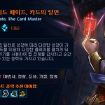 챔프 설명 및 템트리 챔프 능력치 챔프 스킬 챔프 스토리 트위스티드 페이트는 정을 붙이는 법이 없다. 미움받는다는 게 어떤 건지 일찌감치 깨우쳤기 때문이다. 강을 따라 흘러다니는 바다뱀 유랑민이라는 건 이유 없이 따돌림을 당한다는 의미였다. 어릴 때 배운 유랑민의 카드 기술은 지금의 악명 높은 도박꾼 트위스티드 페이트를 키워냈다. 그의 기술은 사람을 홀린다. 부자도 멍청이들도 혀를 내두르며 넋을 놓고 만다. 자신만만하면서도 태평한 트위스티드 페이트에게 진지하고 심각한 모습은 어울리지 않는다. 어떤 상황에서도 써먹을 수 있는 비장의 카드가 항상 손안에 있으니까. 사람들은 바다뱀 유랑민의 이국적인 물건에 끌리면서도 그들의 사는 방식이 이상하다고 무시하기 일쑤였다. 알록달록한 유랑민의 범선은 정박하는 곳에서 ..