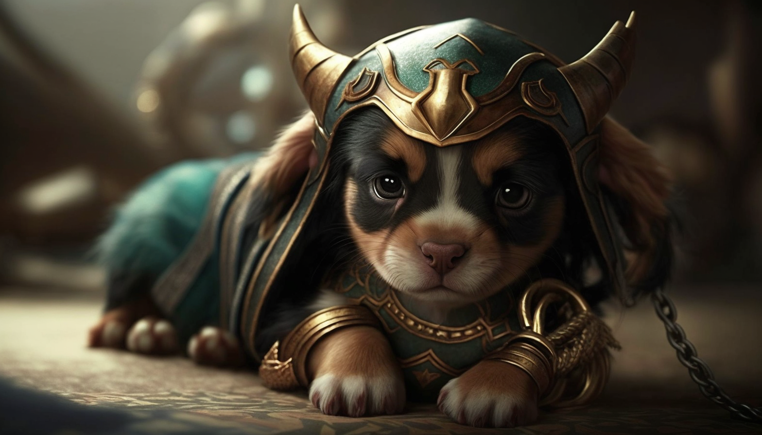 고퀄리티의 귀여운 갑옷입은 강아지