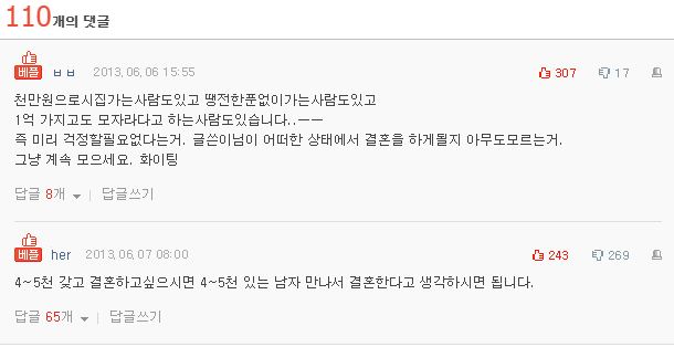 한 사천만원에서 오천만원정도 모이면 시집가고 싶다고