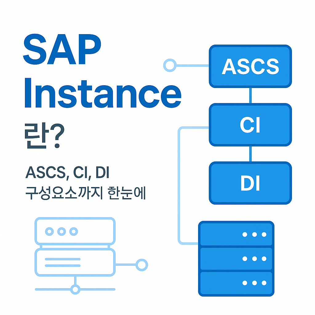 [ASCS] → 시스템 통신과 락 관리 (중앙 서비스) [CI] → 기본적인 Dialog + Background + 기타 작업 처리 [DI] → 부하 분산용 추가 Dialog Instance [DB] → SAP 데이터베이스 서버 (Oracle, HANA 등)